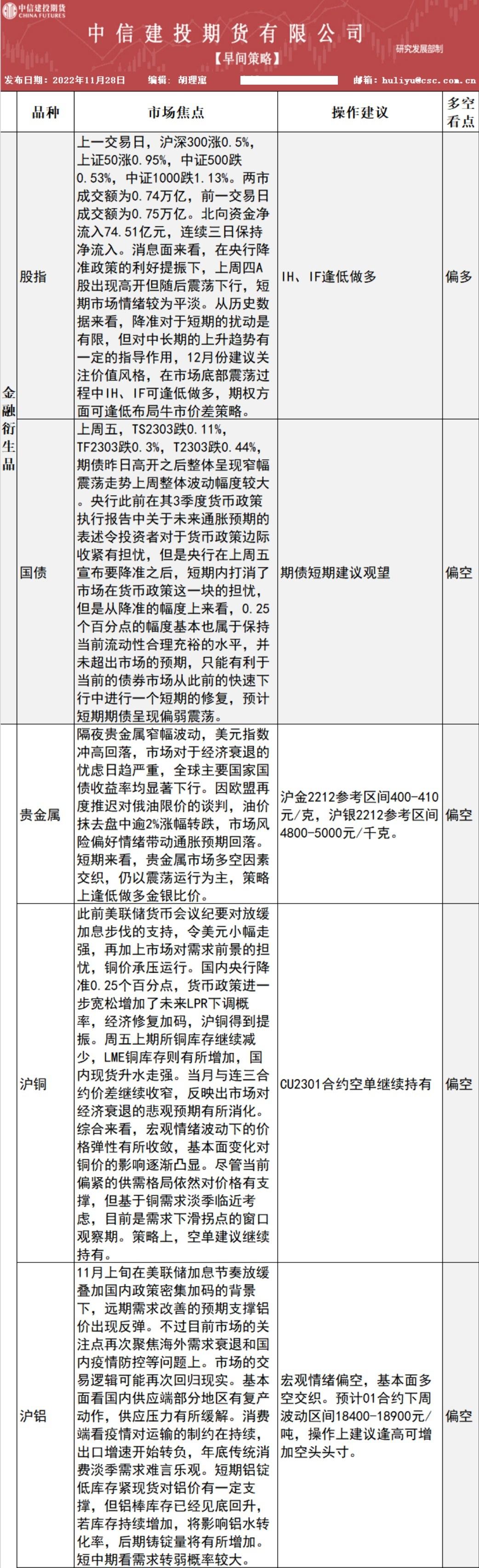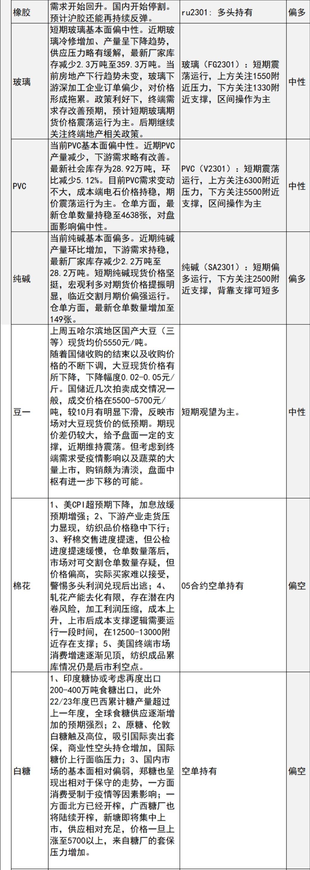 螺纹钢:政策利好预期驱动钢价向上,钢材供需双弱格局明显,钢厂盈利水平低位承压,贸易商冬储意愿不强,国内疫情多点散发且尚未看到新增拐点,影响钢材正常运输及消费节奏,预计短期钢价走势区间震荡为主。