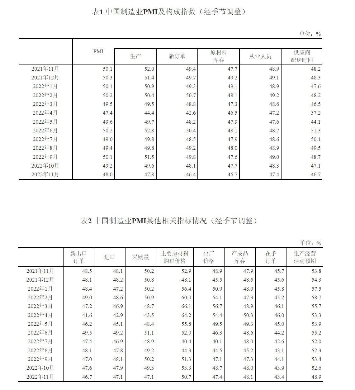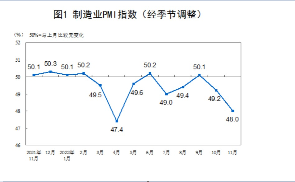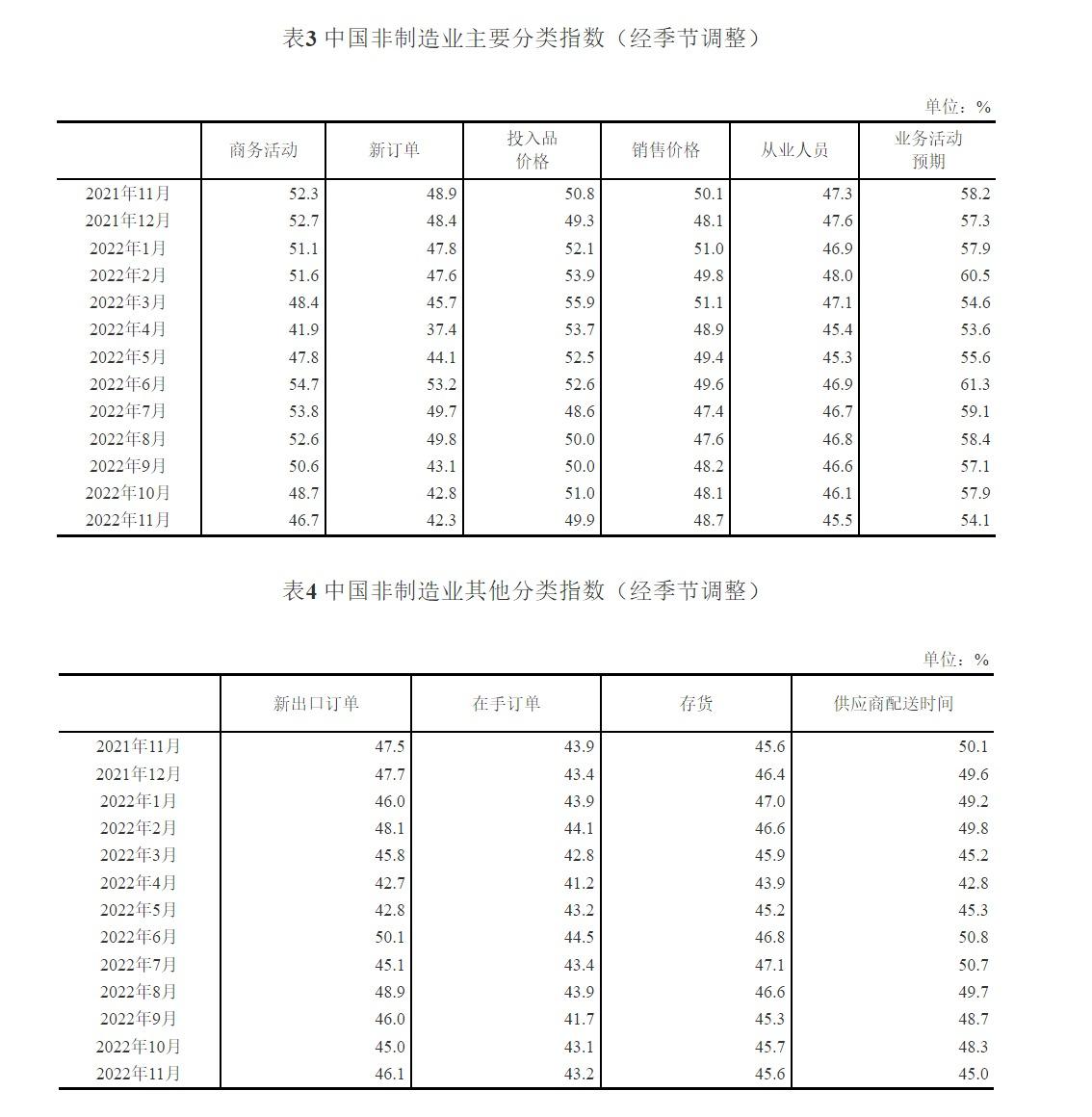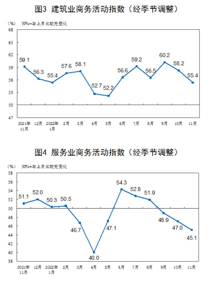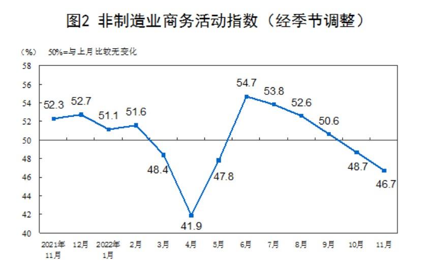 2022年11月30日国家统计局服务业调查中心和中国物流与采购联合会发布了中国采购经理指数。
