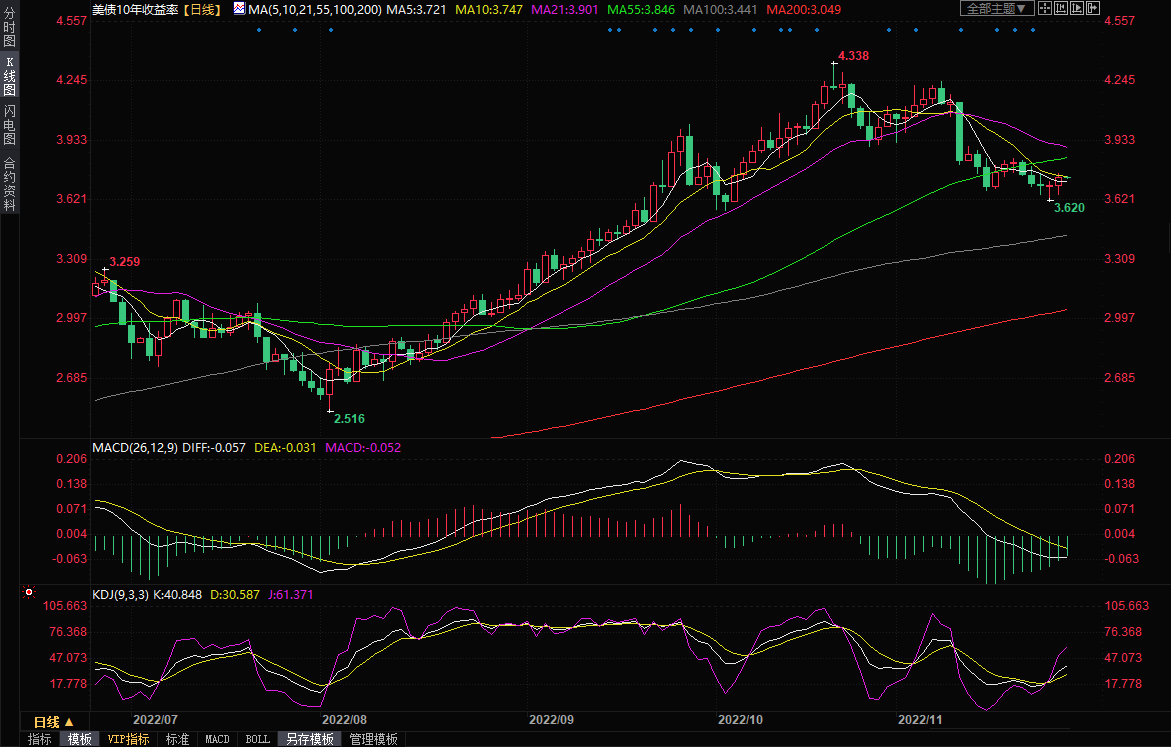 联邦基金利率期货市场预计,美联储在12月13-14日的政策会议上加息50个基点的可能性为63.5%,将在明年6月达到5.007%的终端利率,然后在2023年12月降至4.644%。