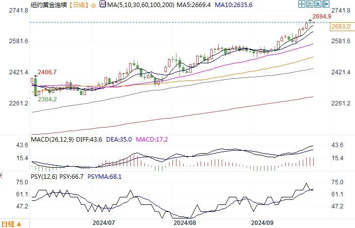 9月25日,纽约金价创下每盎司2694.90美元的历史新高,仅略低于重要的心理关口2700美元。