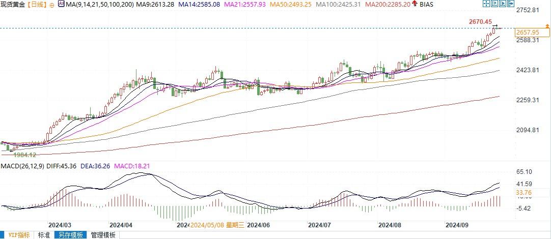 北京时间9月26日9:37,现货黄金报2657.80美元/盎司