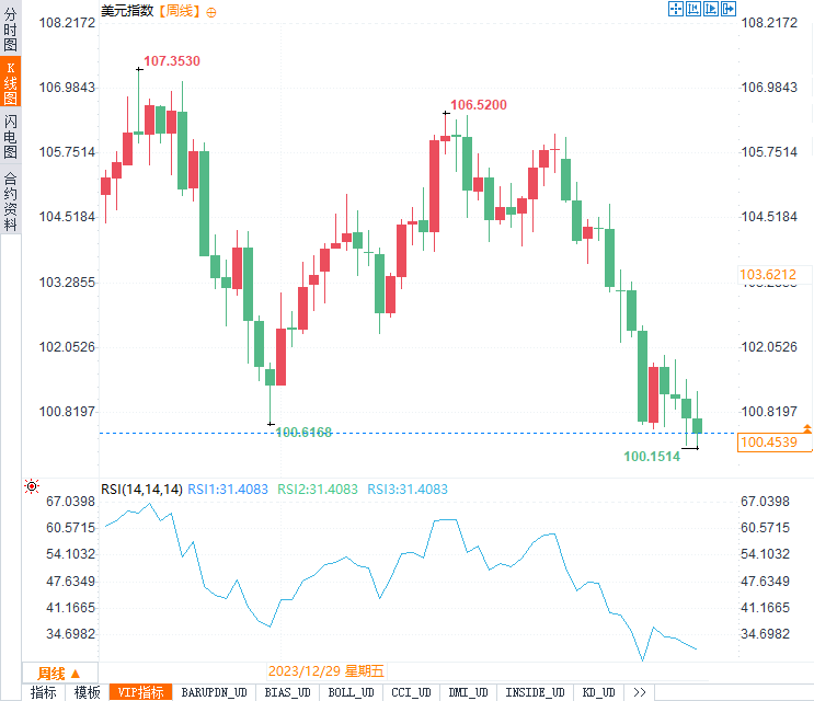 美元指数本周跌至100.15,为2023年7月以来的最低水平。