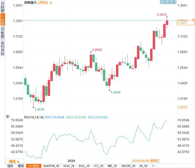 英镑兑美元本周下跌0.3%,报1.3375美元,但本周累计上涨超过0.4%,延续了上周的上涨势头。虽然英镑的上涨趋势有所放缓,但其表现仍优于其他主要货币,原因在于英国经济数据相对乐观,尤其是在消费支出和就业市场方面。