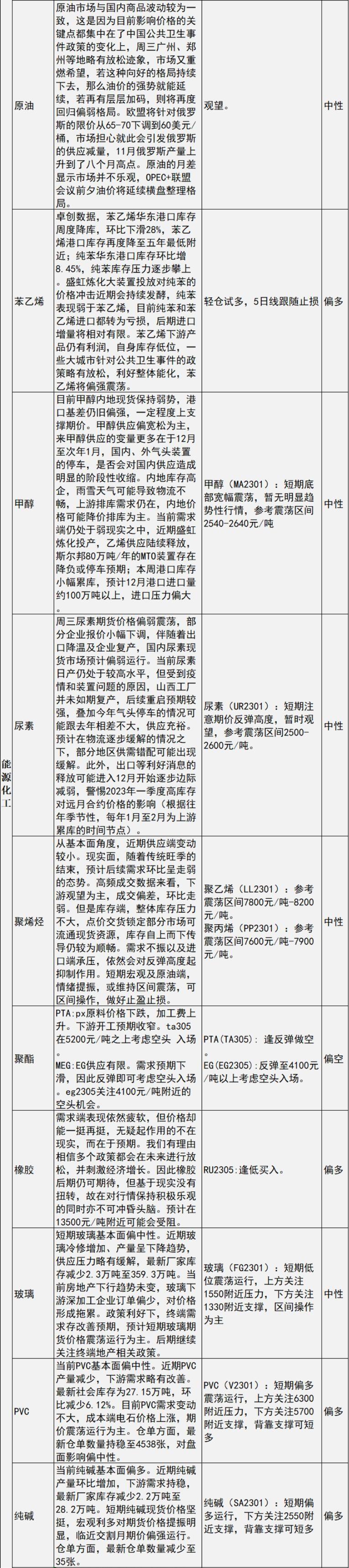原油市场与国内商品波动较为一致,这是因为目前影响价格的关键点都集中在了中国公共卫生事件政策的变化上,周三广州、郑州等地略有放松迹象,市场又重燃希望,若这种向好的格局持续下去,那么油价的强势就能延续,若再有层层加码,则将再度回归偏弱格局。