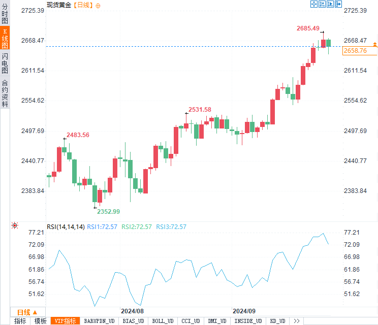 总体而言,本周黄金市场受益于全球经济和地缘政治局势的不确定性,投机需求推动金价接连创下历史新高。美联储的降息预期和投资者对避险资产的兴趣使得黄金表现抢眼。然而,未来几周,美联储政策的进一步走向以及全球主要经济体的反应将继续影响黄金的走势,投资者需关注市场变化,保持谨慎。