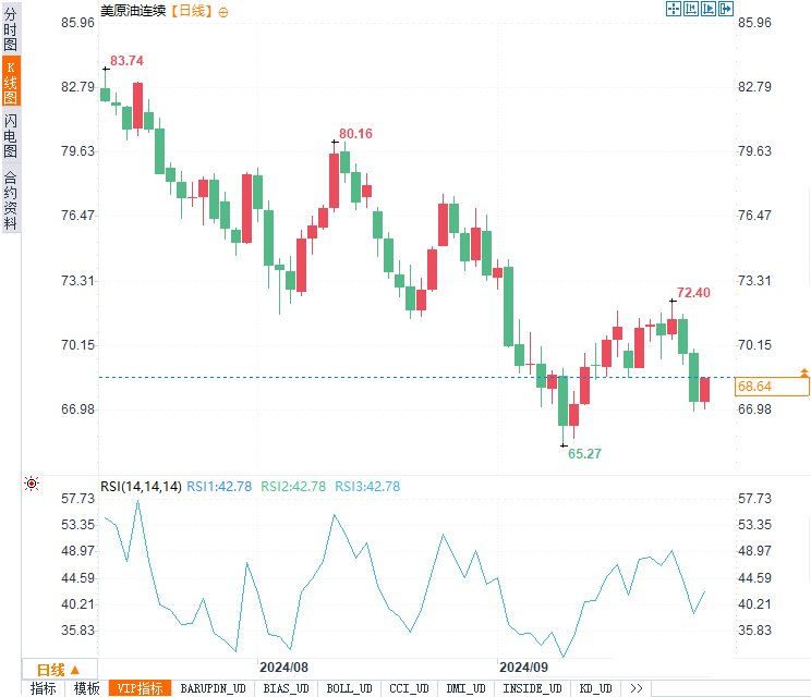 截至周五(9月27日),纽约商品交易所11月交割的西德州中质原油(WTI)期货价格上涨了51美分,涨幅约为0.8%,报收于每桶68.18美元。然而,本周WTI原油累计下跌5.2%,这是三周以来的首次周跌幅。同样,布伦特原油周五上涨0.5%,至每桶71.98美元,但本周也录得较大跌幅,反映了全球油市的不稳定性。