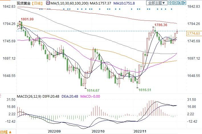 北京时间12月1日10:53,现货黄金报1774.63美元/盎司
