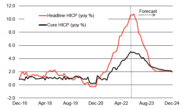 意大利联合信贷银行预计,欧元区的通货膨胀率在年底前将保持在同比10%以上,然后进入下行趋势,到2023年底将达到2.5%,到2024年年中将达到2%。