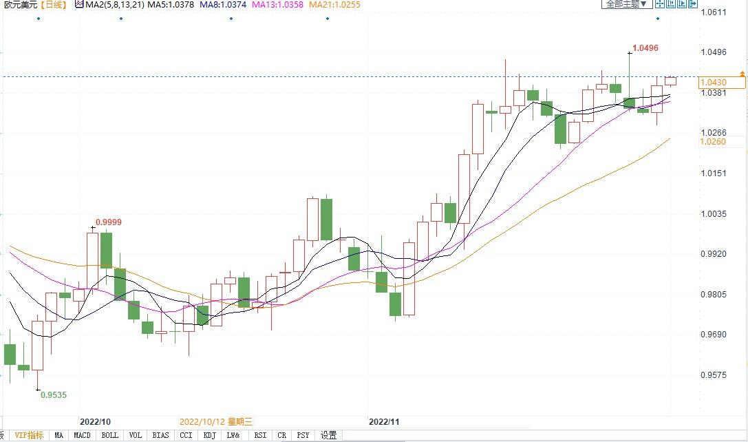 北京时间12月1日8:43,欧元兑美元报1.0431/32