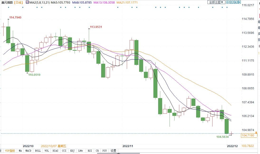 北京时间12月2日11:46,美元指数报104.71