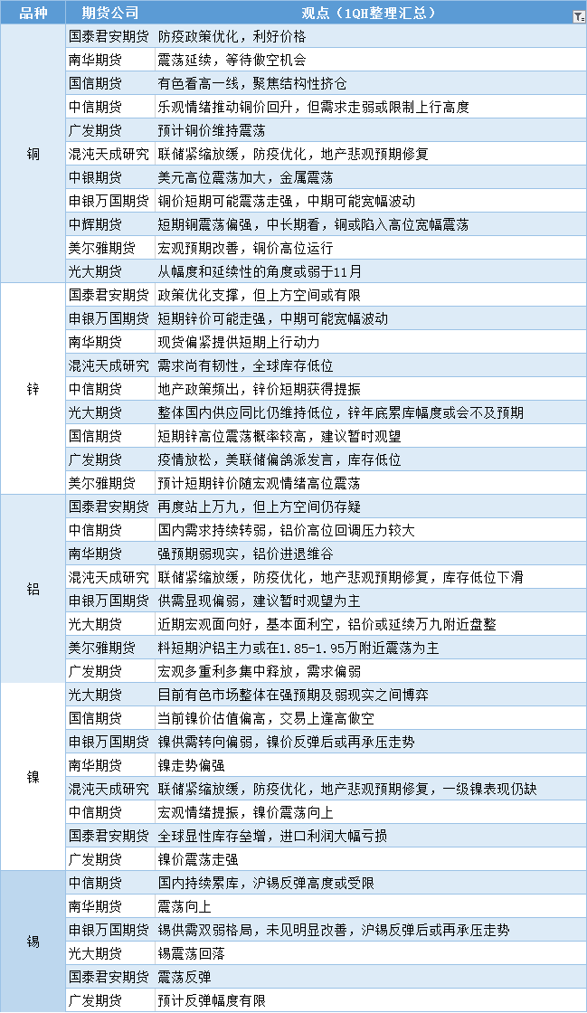 汇通财经APP讯——期货公司观点汇总一张图:12月5日有色系(铜、锌、铝、镍、锡等)