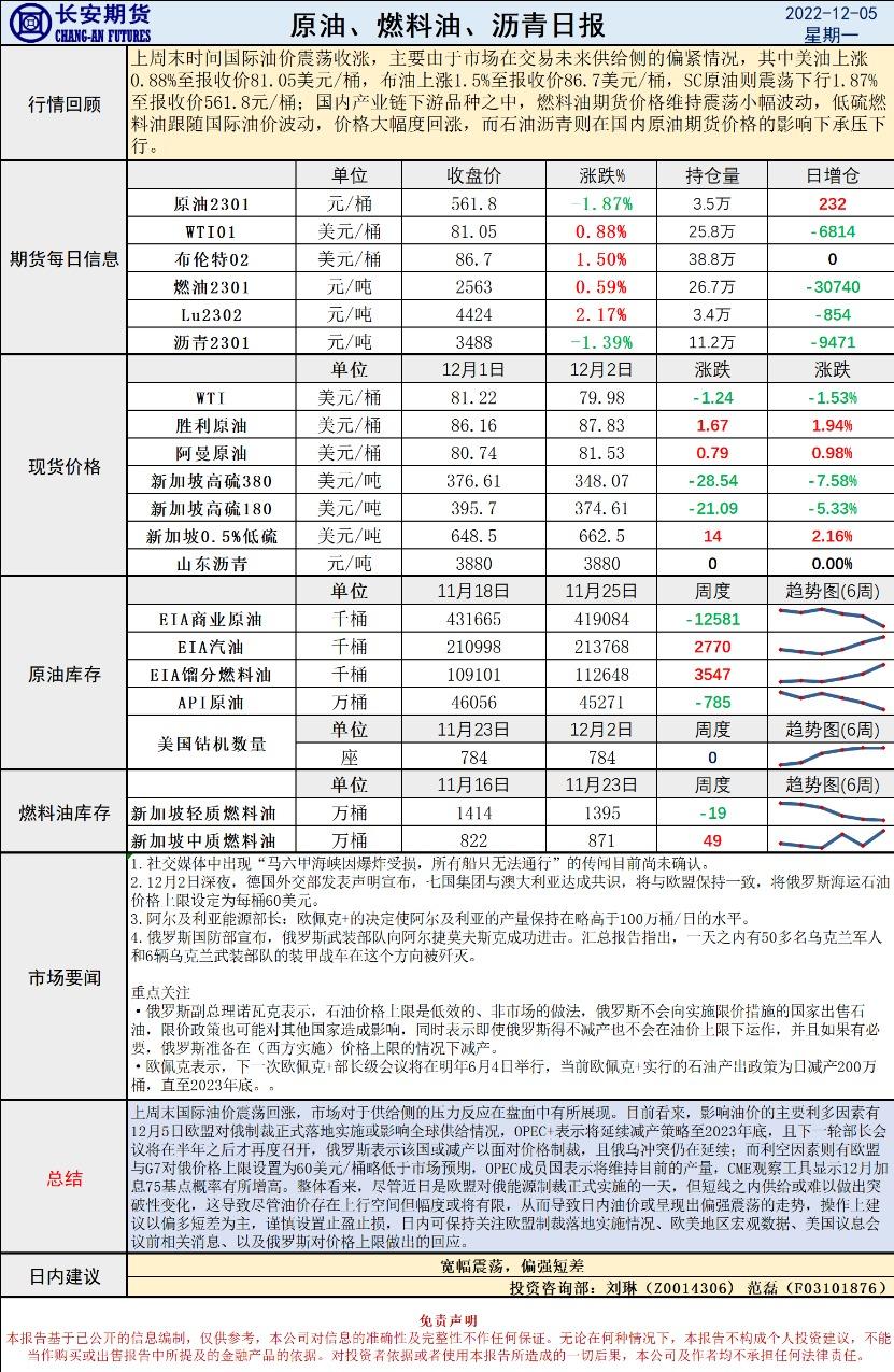 汇通财经APP讯——12月5日,长安期货发布原油早评,认为原油将宽幅震荡,建议偏强短差。长安期货公司授权文本由“专注期货开户交易及专业行情分析资讯网站”:【一期货 www.1qh.cn】转发