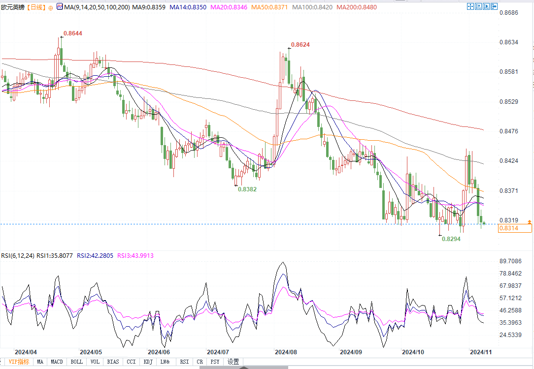 北京时间11月8日10:12,欧元兑英镑报0.8314/16