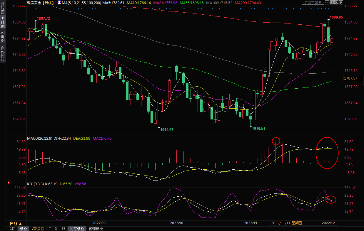 汇通财经APP讯——周二(12月6日)亚洲时段,现货黄金震荡反弹,目前交投于1775美元/盎司附近;隔夜出炉的美国11月份ISM非制造业PMI数据表现强于预期,帮助美元从逾五个月低点大幅反弹,令金价从近五个月高点大幅回落,金价周一收跌1.62%,收报1668.59美元/盎司,为逾两个月最大单日跌幅,虽然短线超跌后存在反弹需求,但是后市看涨信号明显减弱。