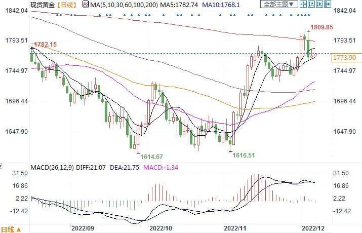 随着美联储在2023年下半年开始放松政策,金价将上涨,并保持其坚实的涨幅。荷兰国际预计,金价将在明年第四季度升至每盎司1850美元。目前现货黄金交投于1773美元附近。
