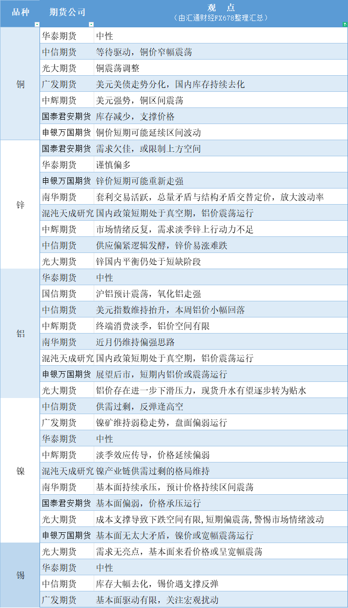 汇通财经APP讯——期货公司观点汇总一张图:12月3日有色系(铜、锌、铝、镍、锡等)。更多详见本文的汇通财经特制图。
