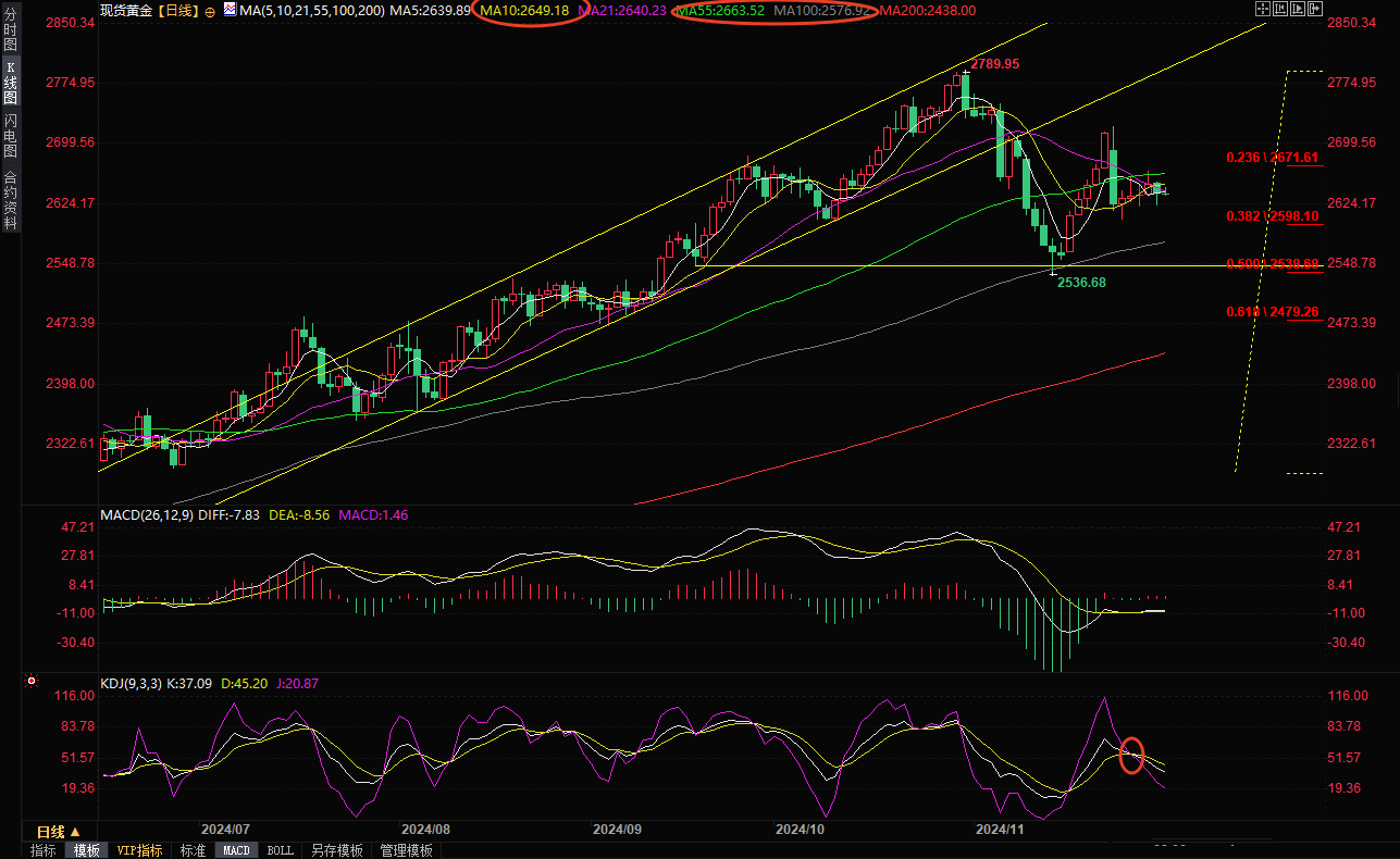 鉴于KDJ有金叉趋势,如果金价能够站稳布林线中轨2642.44上方,则需要提防金价进一步试探布林线上轨阻力的可能性。