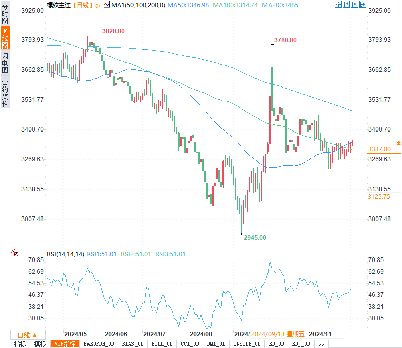 未来走势:尽管远期需求预期偏弱,但短期现实需求对价格形成一定支撑。预计螺纹钢盘面将维持区间震荡,关注3300元/吨附近的支撑力度。