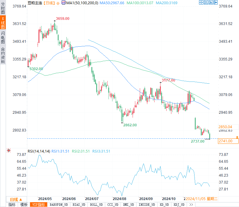 未来走势:粕类价格仍受制于全球供应宽松格局,短期缺乏提振因素,但因国际大豆价格已接近成本线,下跌空间可能有限。中期需关注巴西丰产兑现进度及美豆出口动向。