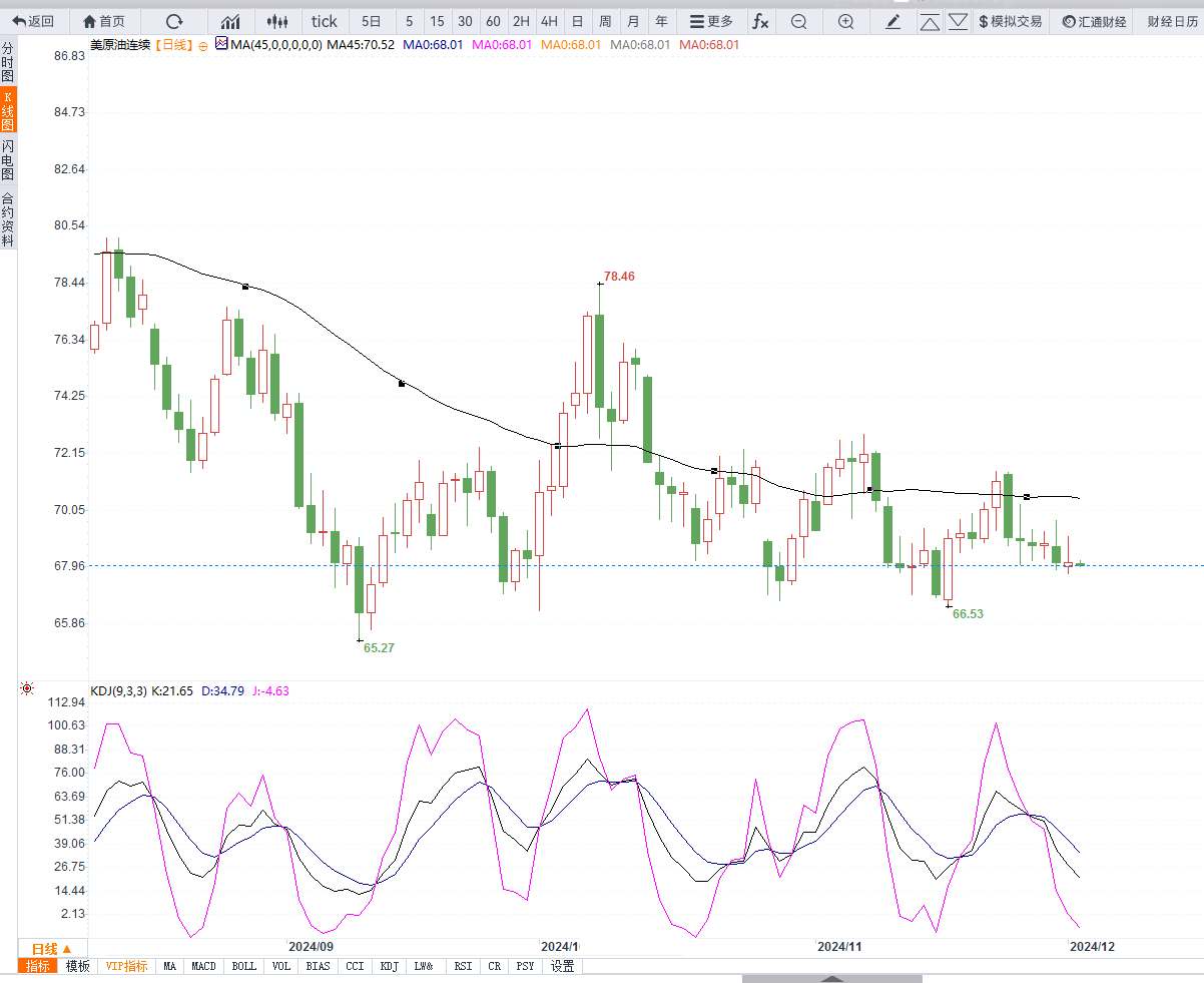 目前来看, 市场对于美联储12月降息预期的放缓限制了油价的上涨,同时美元指数依然在高位运行,也不利油价反弹,整体偏震荡对待,等待方向选择。