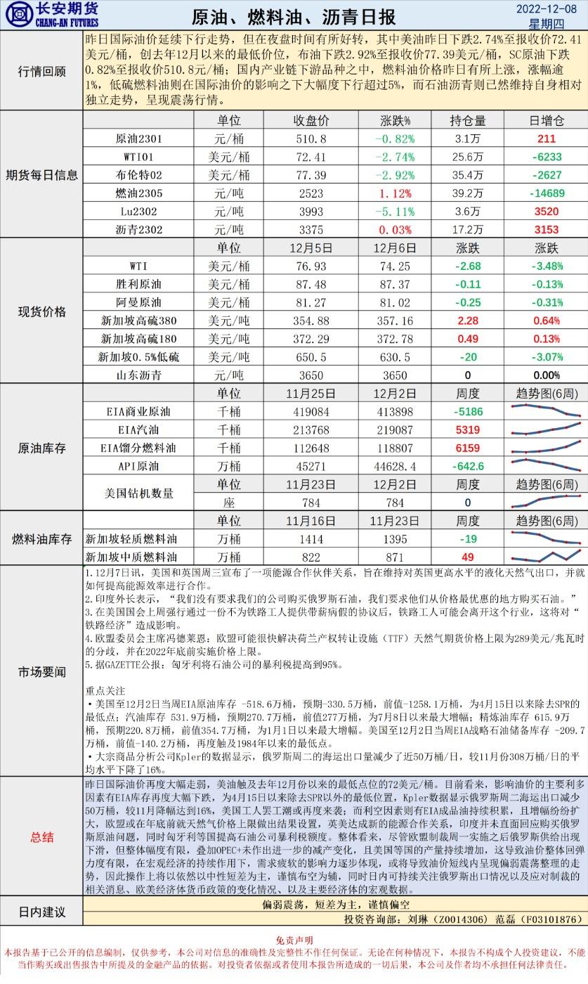 汇通财经APP讯——12月8日,长安期货发布原油早评,认为原油将偏弱震荡,短差为主,谨慎偏空。 长安期货公司授权文本由“专注期货开户交易及专业行情分析资讯网站”:【一期货 www.1qh.cn】转发
