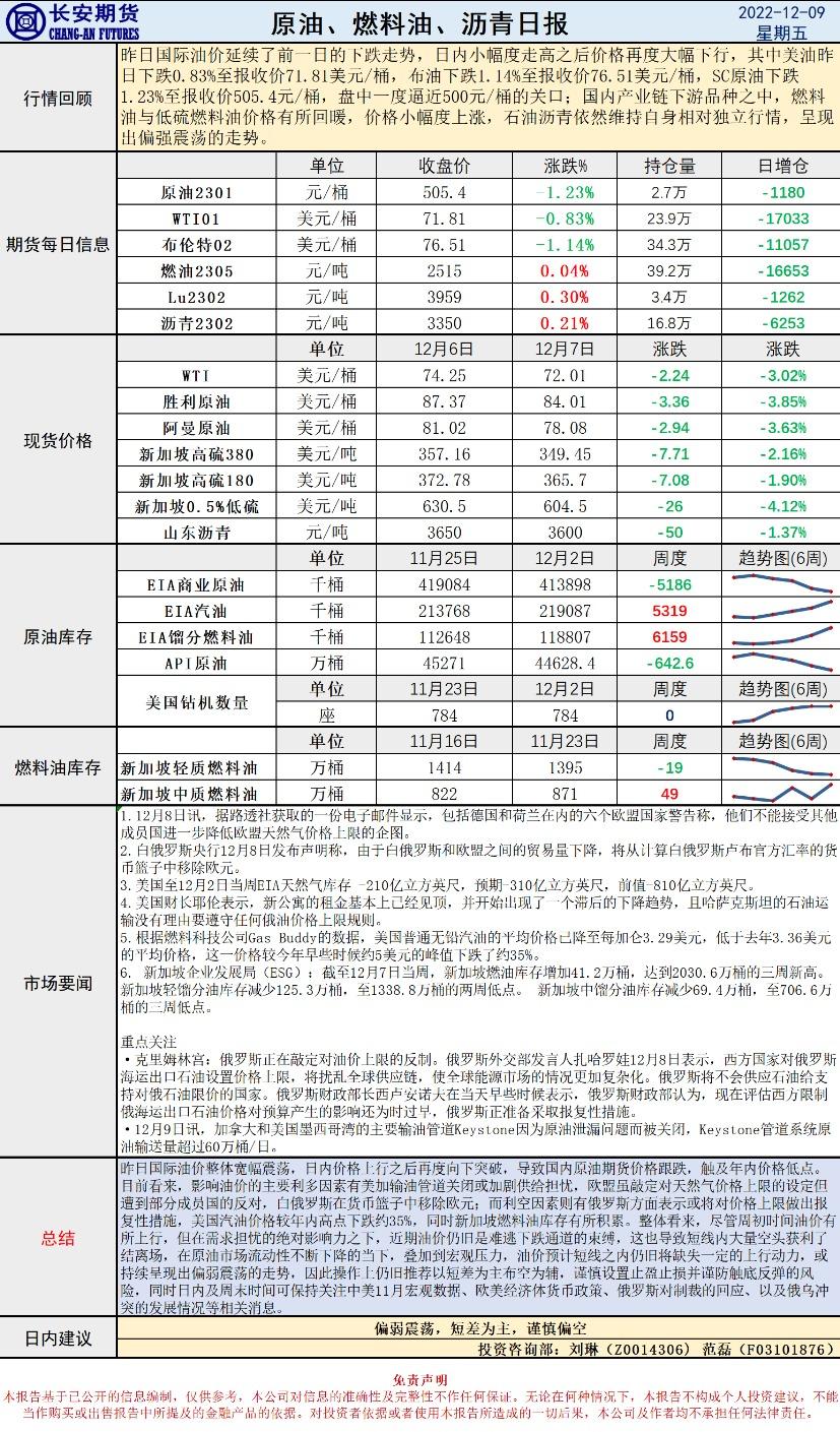 汇通财经APP讯——12月9日,长安期货发布原油早评,认为原油将偏弱震荡,短差为主,谨慎偏空。 长安期货公司授权文本由“专注期货开户交易及专业行情分析资讯网站”:【一期货 www.1qh.c