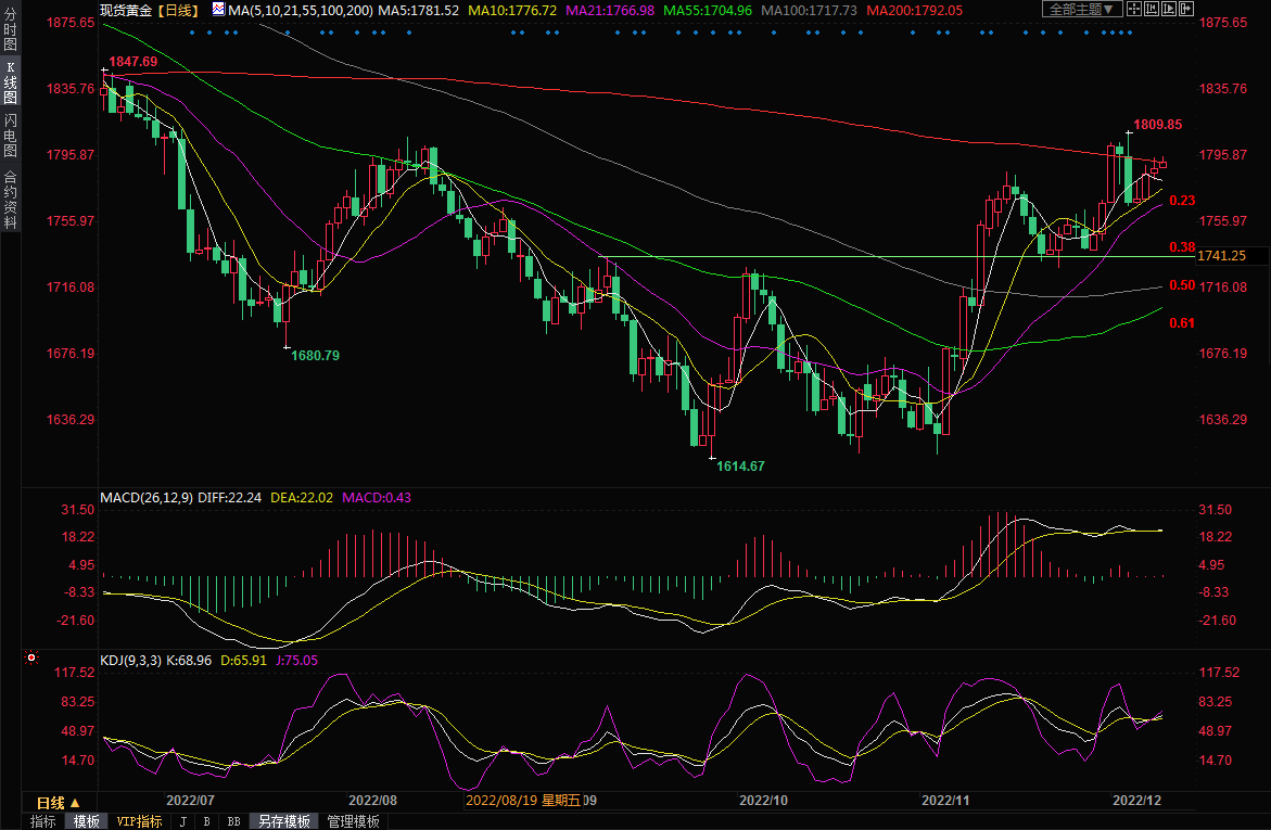 汇通财经APP讯——周五(12月9日)亚洲时段,现货黄金震荡上涨,目前初步顶破了200日均线,刷新了四日高点至1795.60美元/盎司,因为市场预计下周将出炉的美国11月份CPI数据将进一步显示通胀放缓,而且美联储下周料将仅加息50个基点,该预期令美元持续承压,一度创四日新低至104.50附近,逼近周一创下近逾五个月新低104.11。