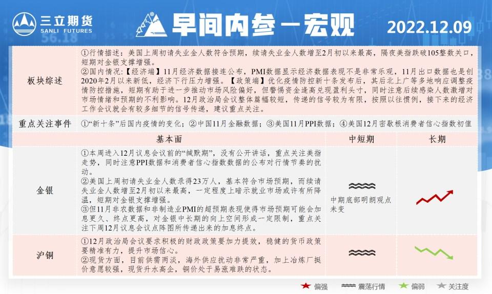 汇通财经APP讯——三立期货早间内参显示,金银中短期偏震荡,中期底部明朗观点未变,长线偏多;沪铜中短线偏向震荡,长线偏空。三立期货期货公司授权文本由“专注期货开户交易及专业行情分析资讯网站”【一期货 www.1qh.cn】转发。