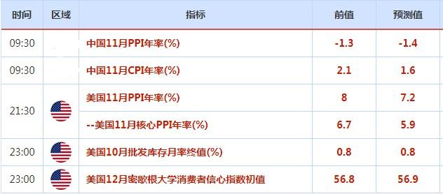 投资者还在等待周五的美国11月生产者价格数据(PPI)和美国12月密歇根大学消费者信心指数初值,而美国月度消费者通胀数据将于下周公布,在美联储12月14日政策会议的前一天。通胀数据对于确立货币政策的长期预期可能至关重要。