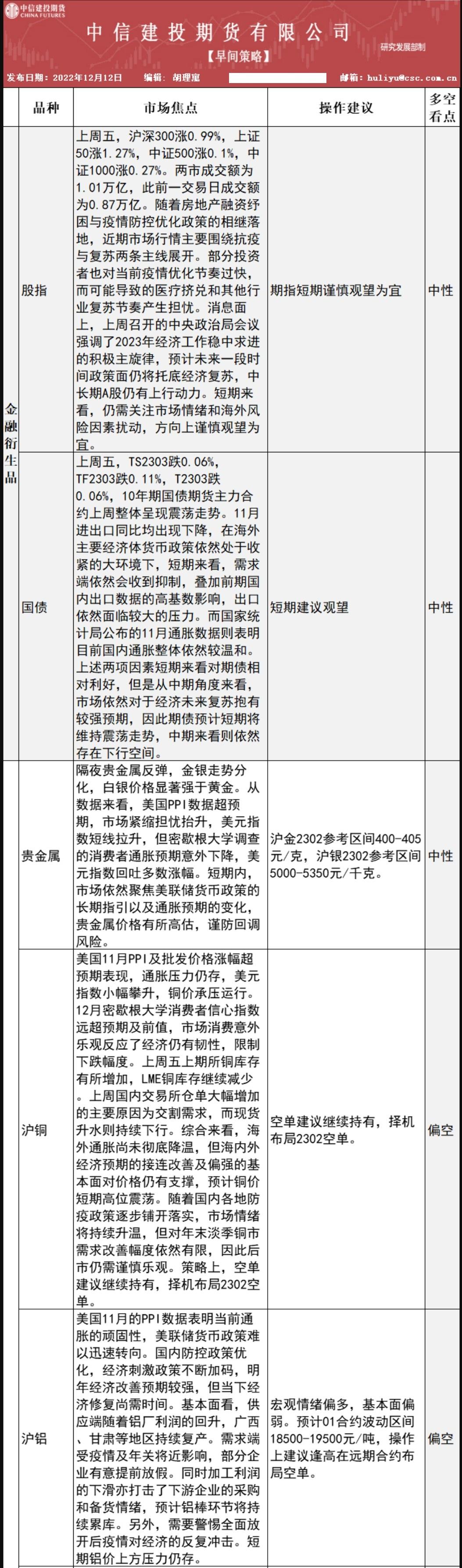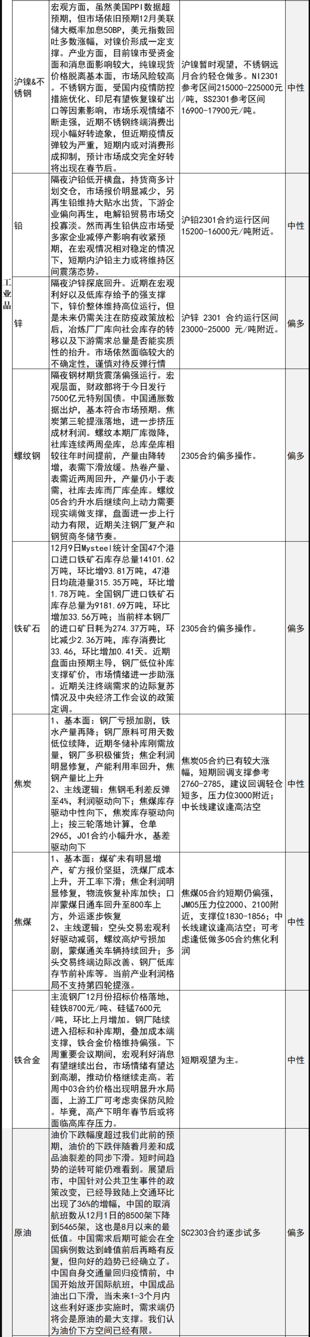 锌:近期在宏观利好以及低库存给予的强支撑下,锌价整体维持高位运行,市场依然面临较大的不确定性,谨慎对待反弹行情。