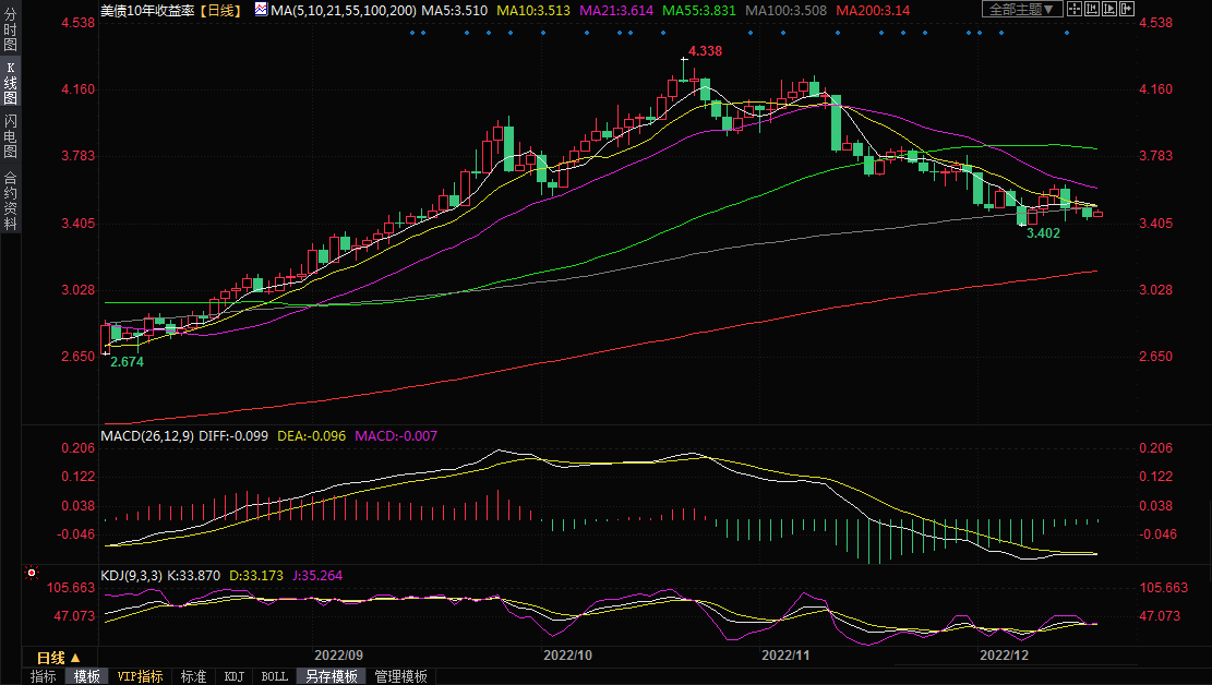 美国10年期国债收益率周四下跌约5个基点,至3.45%,30年期美债收益率周四下跌超过4个基点,至3.494%。