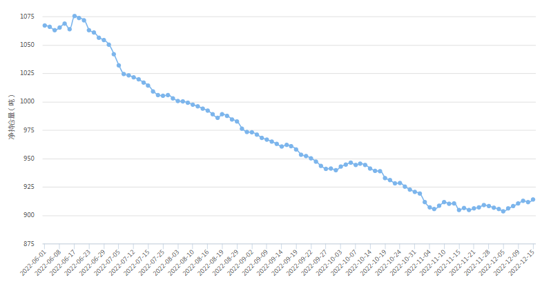 数据显示,全球最大黄金ETF--SPDR Gold Trust周四持仓较上日增加2.32吨,当前持仓量为913.88吨,为11月1日以来新高。