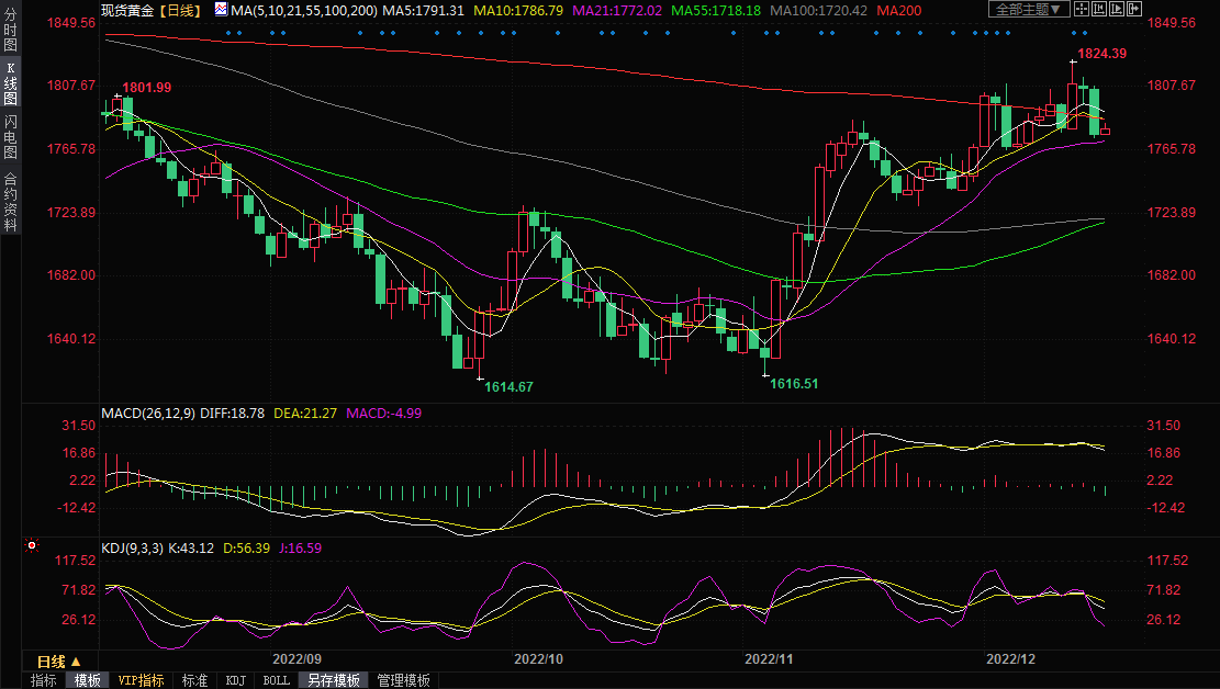 汇通财经APP讯——周五(12月16日)亚洲时段,现货黄金震荡微涨,目前交投于1780.66美元/盎司附近,隔夜金价大跌后,短线存在一些调整需求。在美联储表示明年将进一步加息后,投资者担忧美联储可能在明年继续加息导致经济衰退的风险,美元的避险买需攀升,帮助美元指数从近半年低位大幅反弹,金价周四大跌1.69%,录得近三个月最差表现。