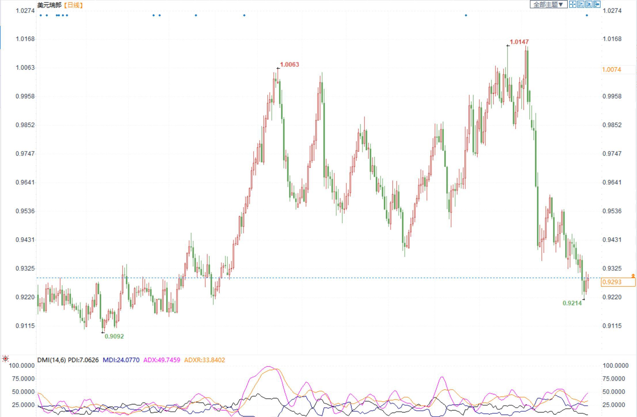 美元瑞郎本周小幅回落,本周瑞士央行跟随美联储加息50基点,避险需求增加支持瑞郎
