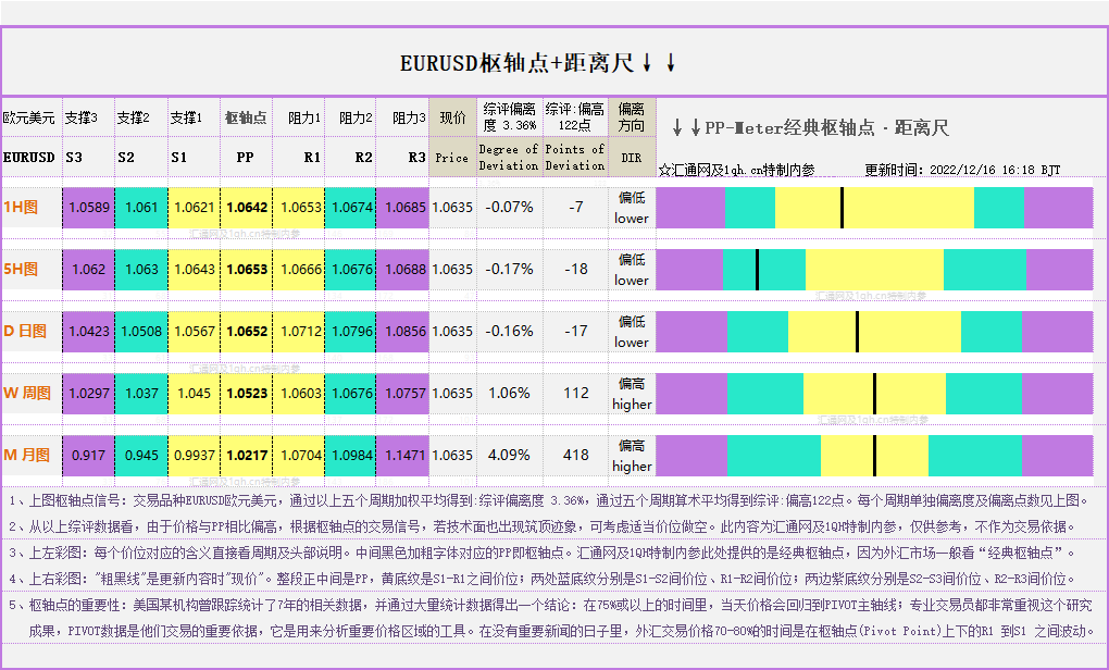 标题:图解价格偏离度:14个热门货币对枢轴点+距离尺一览(2022/12/16周五)