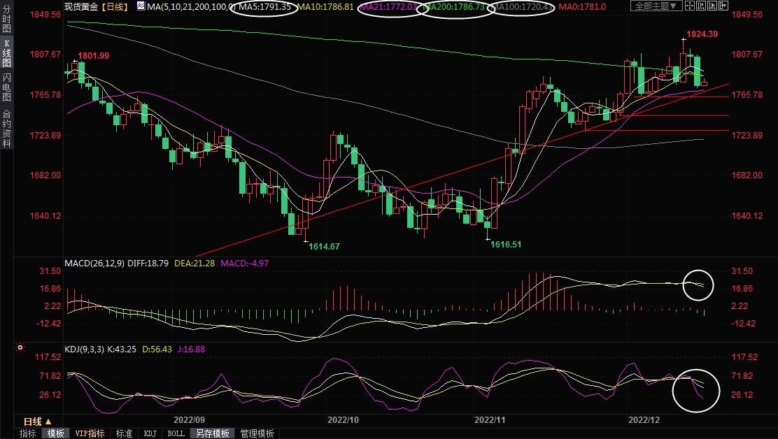汇通财经APP讯——周五(12月16日)亚洲时段,现货黄金反弹受阻,目前交投于1781美元/盎司附近,上一交易日因为美元大涨,金价再度回落至1800关口下方,并失守200日均线,技术面再度出现“黄昏之星”的顶部信号,金价短线见顶信号显著增强,需要提防金价的进一步下跌风险。