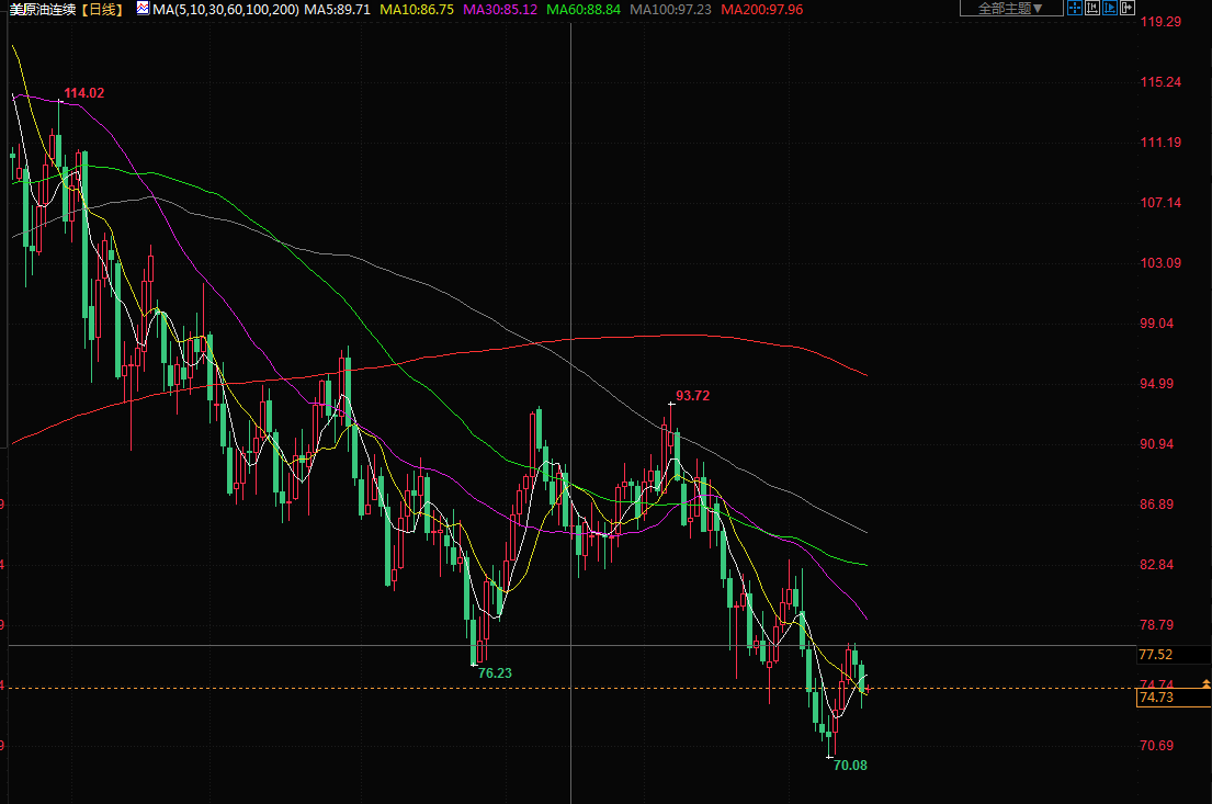 汇通财经APP讯——12月19日(周一)亚市盘初,美油交投于74.86美元/桶附近;油价上周五下跌超2%,追随全球股市广泛跌势,因担心经济衰退迫在眉睫,此前欧洲和北美的央行均表示将继续激进抗击通胀;周末消息俄罗斯原油依照G7价格上限规定运往印度,或成俄罗斯有所退让的初步迹象,油价或再受拖累。