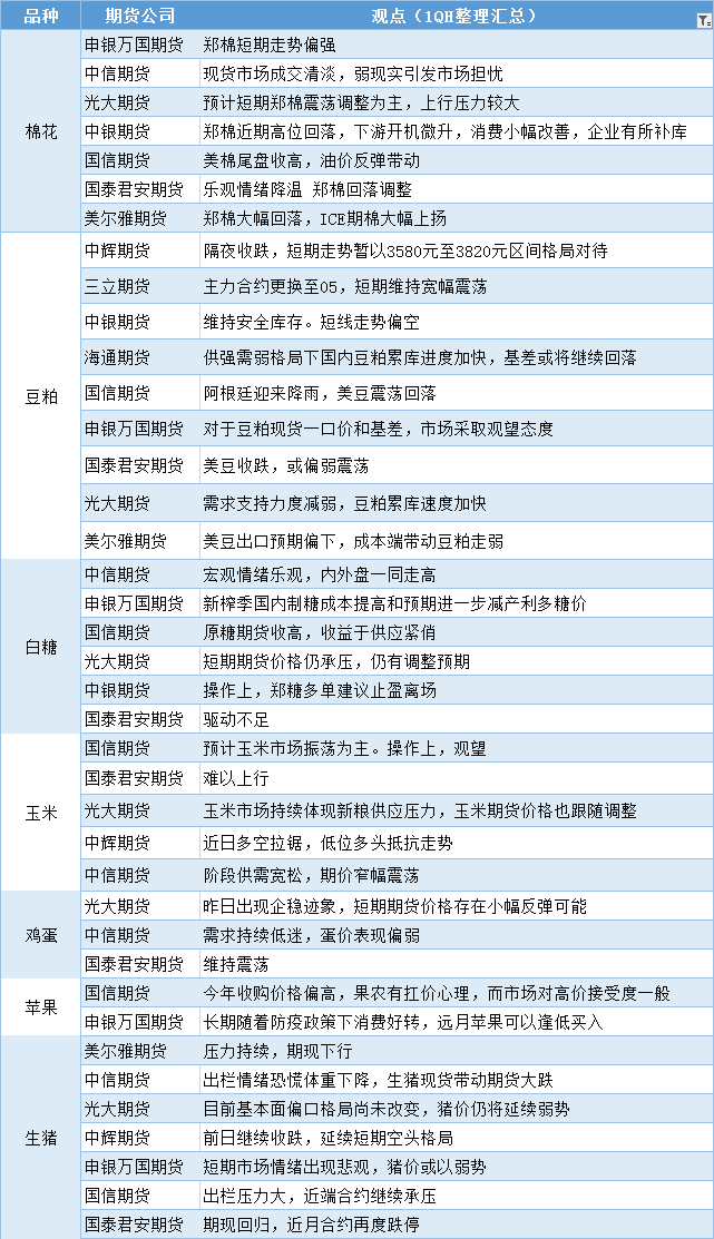 标题:期货公司观点汇总一张图:12月20日农产品(棉花、豆粕、白糖、玉米、鸡蛋、生猪等)