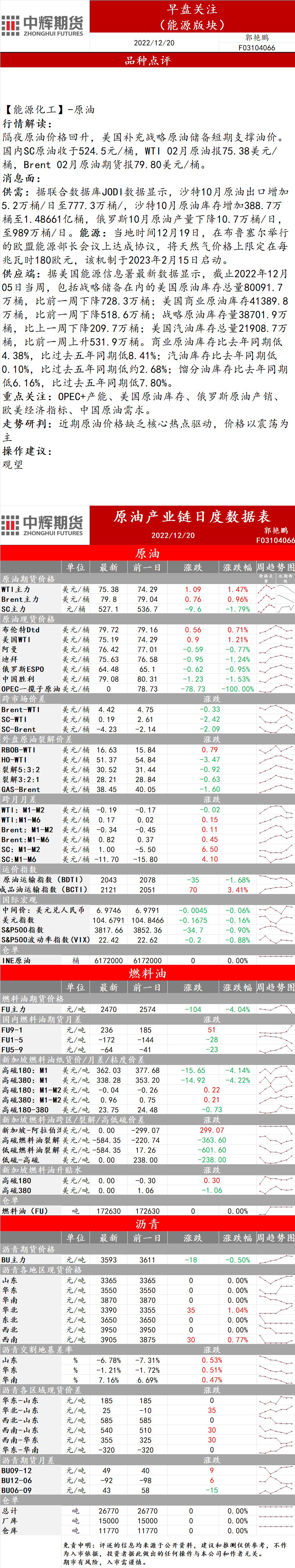 汇通财经APP讯——12月20日,中辉期货发布能源早盘关注,称近期原油价格缺乏核心热点驱动,价格以震荡为主,建议观望。 中辉期货公司授权文本由“专注期货开户交易及专业行情分析资讯网站”:【一期货 www.1qh.cn】转发