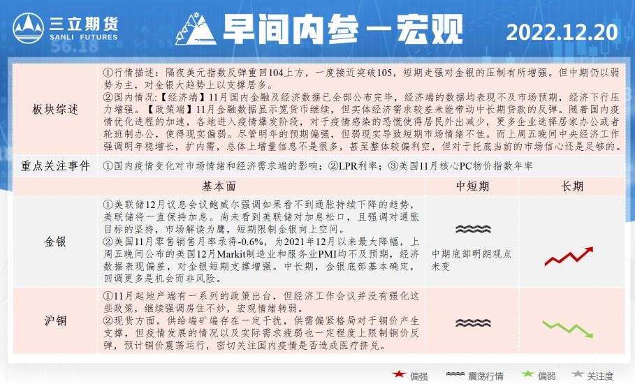 汇通财经APP讯——三立期货早间内参显示,金银中短期偏震荡,中期底部明朗观点未变,长线偏多;沪铜中短线偏向震荡,长线偏空。三立期货期货公司授权文本由“专注期货开户交易及专业行情分析资讯网站”【一期货 www.1qh.cn】转发。