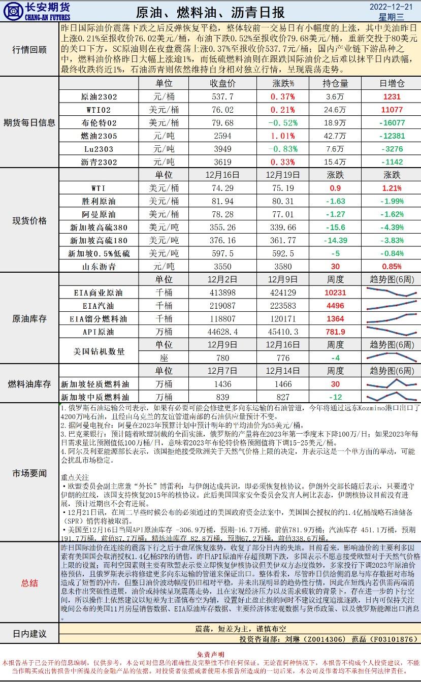 汇通财经APP讯——12月21日,长安期货发布原油早评,认为原油将震荡,短差为主,谨慎布空。长安期货公司授权文本由“专注期货开户交易及专业行情分析资讯网站”:【一期货 www.1qh.cn】转发