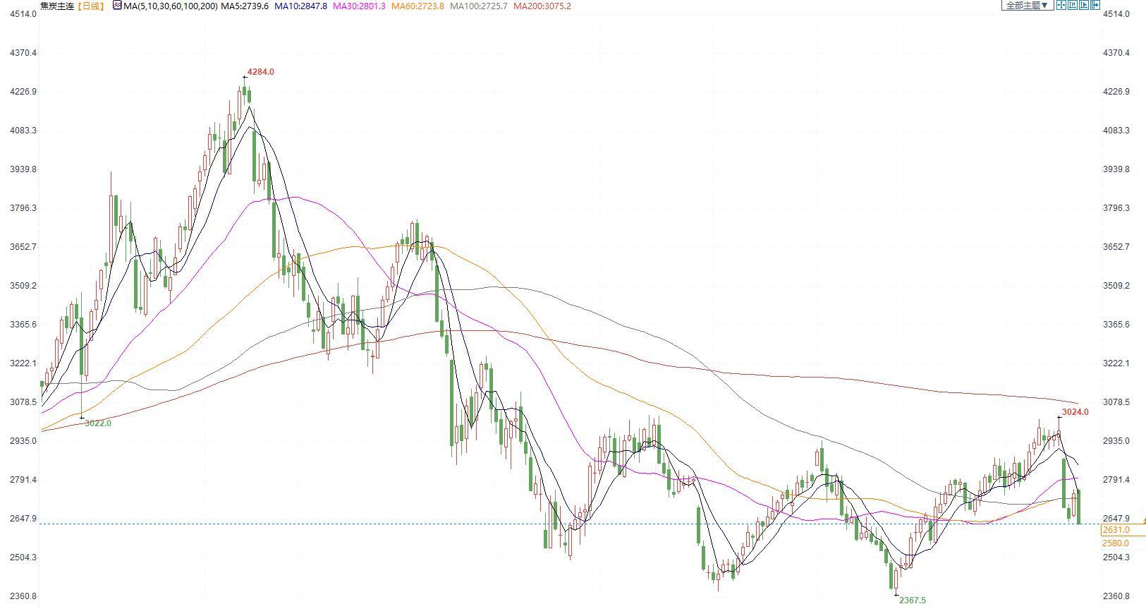 价格:今日05合约收跌于2631,港口准一级仓单成本2989元/吨。北方代表性钢厂落实第四轮提涨,焦炭累积涨幅400-440元/吨,本轮涨价有望近日全面落地。