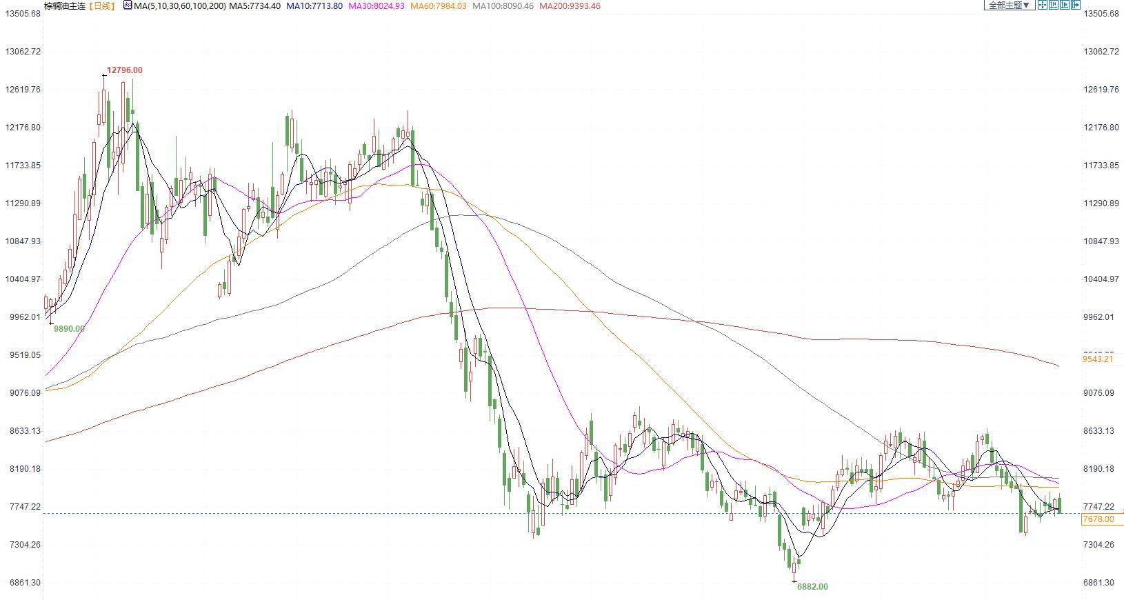 棕榈油2305合约日内跌1.01%,收盘7678元/吨;广州市场棕榈油7610元/吨。