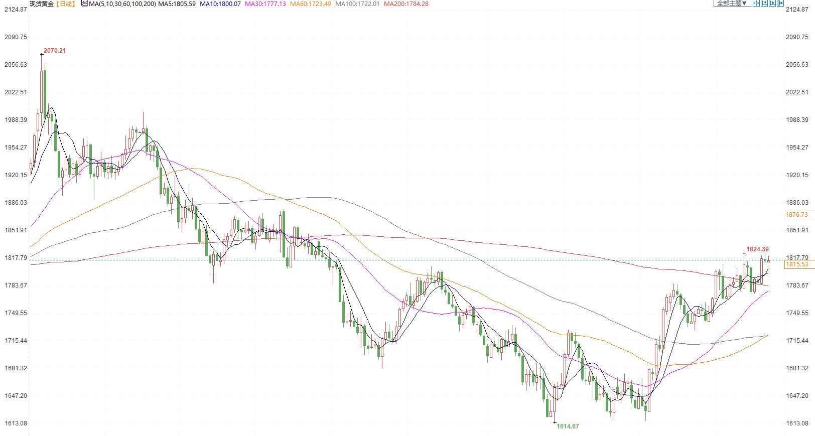 贵金属:美指窄幅震荡,金银面临技术上的压力位考验