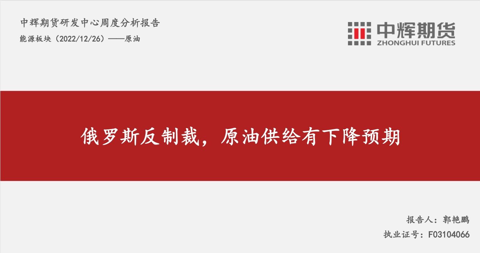 汇通财经APP讯——中辉期货发布原油周报,称俄罗斯反制裁,原油供给有下降预期,需关注全球原油需求变化。中辉期货公司授权文本由“专注期货开户交易及专业行情分析资讯网站”:【一期货 www.1qh.cn】转发