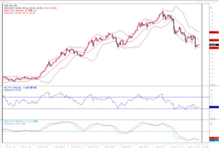 周一(12月26日)的外汇市场,美元对日元变动有限,仍处在大跌之后的小幅整理走势形态之中。日本央行意外调整长期利率上限一直引起市场的密切关注,市场一度视之为日本政策收紧的先兆。有分析认为,一本此次超预期调整政策,具有强烈的稳定市场的“自救”意味;其次有利于缓解日本国债流动性问题。这些因素,无疑对于日元来说都是有利的。因此,近期押注日元价值回归的交易料将成为主流。短线4小时图上,美元兑日元暂时仍保持在20期短期均线附近小幅整理之中,RSI处在均衡线附近,暂时指向不明朗。预计窄幅波动走势将维持至本年末。近期留意的波动区间集中在130.50-133.00之间。