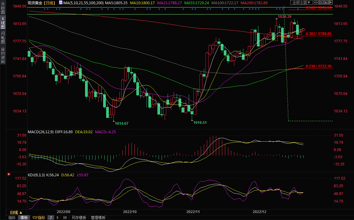 汇通财经APP讯——周二(12月27日)亚市盘初,现货黄金震荡微涨,一度创两个交易日高点至1804.78美元附近,中国周一晚间发文明确,自2023年1月8日起,将新型冠状病毒肺炎更名为新型冠状病毒感染,取消入境后集中隔离、有序恢复出境游。这令市场风险偏好有所改善,打压了美元的避险需求,美元跌创三个交易日新低,给金价提供支撑,俄乌地缘局势持续也给金价提供支撑;调查显示,投资者偏向认为2023年金价有望迎来上涨。