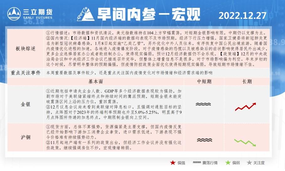 汇通财经APP讯——三立期货早间内参显示,金银中短期偏震荡,长线偏多;沪铜中短线偏向震荡,长线偏空。三立期货期货公司授权文本由“专注期货开户交易及专业行情分析资讯网站”【一期货 www.1qh.cn】转发。
