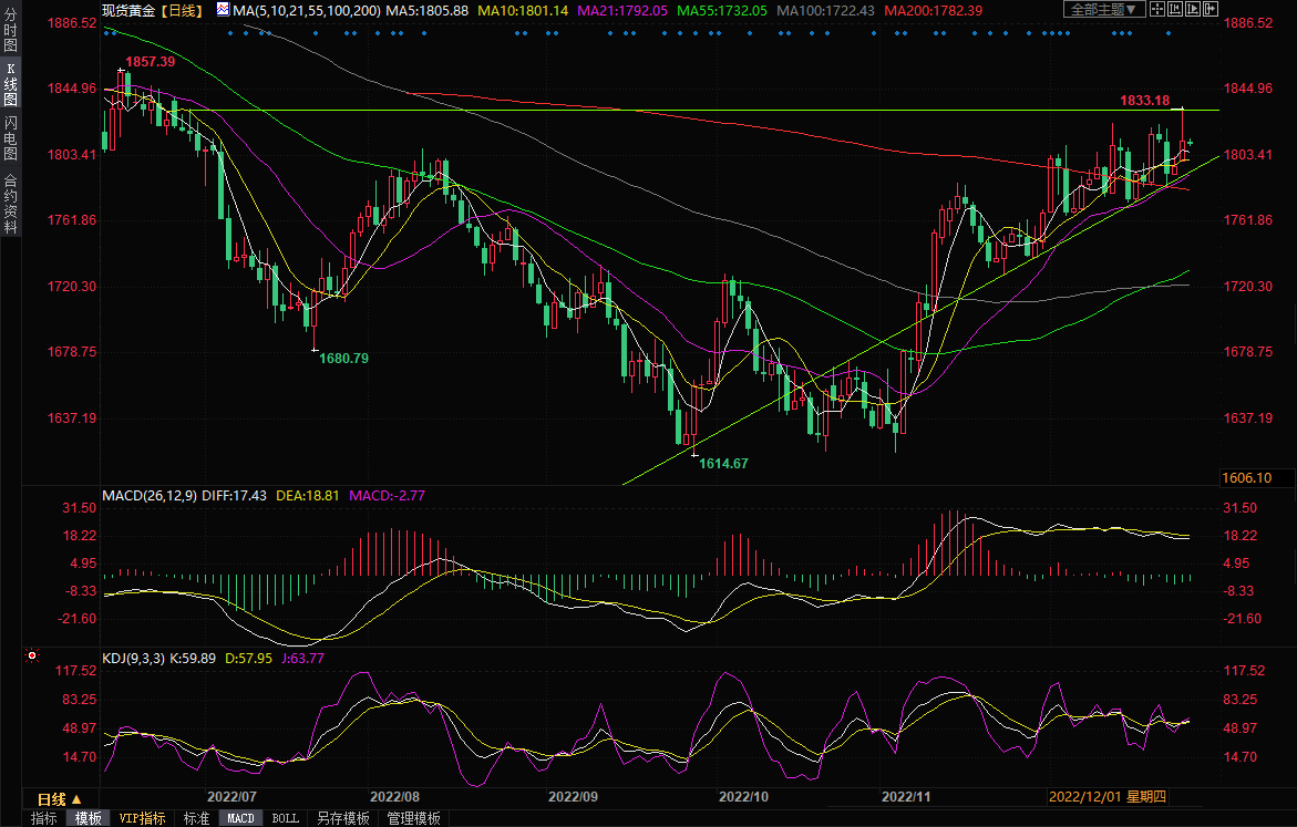 整体来看,虽然美联储的进一步加息前景和较长时间维持高利率的预期,帮助美债收益率上涨,这令黄金多头有所顾忌;但市场已经基本认定美联储已经迎来拐点,未来将进一步放缓加息步伐,2023年甚至有望迎来降息,美元指数中长线见顶预期更浓,短线美元也偏向弱势,金价后市仍偏向震荡走高。北京时间10:18,现货化工局现报1810.84美元/盎司。