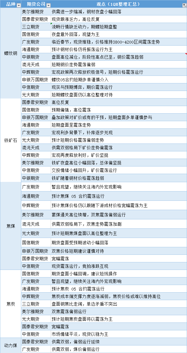 标题:期货公司观点汇总一张图:12月29日黑色系(螺纹钢、焦煤、焦炭、铁矿石、动力煤等)